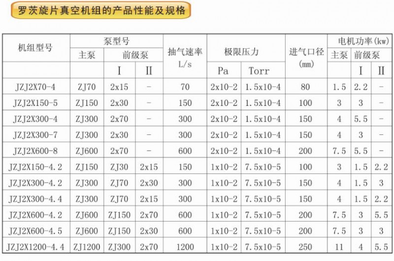 羅茨旋片真空機(jī)組的產(chǎn)品介紹JSJ2X型羅茨旋片真空機(jī)組是以羅茨泵為主泵,以旋片泵為前泵串聯(lián)而成。其結(jié)構(gòu)緊湊,操作方便。使用于除空氣及其它無(wú)可凝性及無(wú)腐蝕性氣體,廣泛應(yīng)用于需要大抽速和高真空的各種真空系統(tǒng)中。如:真空冶煉電力電容器、變壓器、真空浸漬處理、真空鍍膜設(shè)備中的預(yù)抽等。