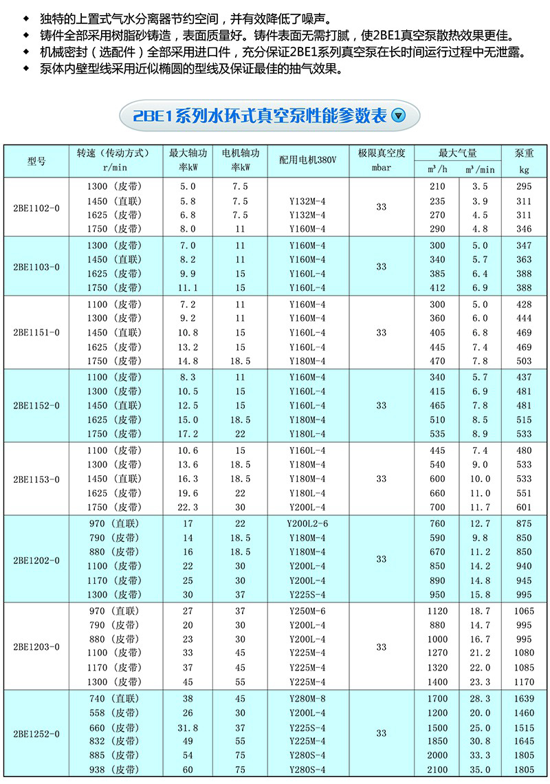 ◆泵體全部采用鋼板制作 ,提高了2BE1真空泵的使用壽命。