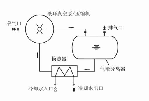 液環(huán)真空泵/壓縮機(jī)閉路循環(huán)系統(tǒng)主要部件包括: